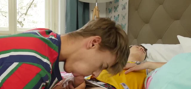 Cute twink After giving Kaleb Cross a messy bj to wake him up, Kieran Karlsson gets rimmed and nailed wild and doggy-style.