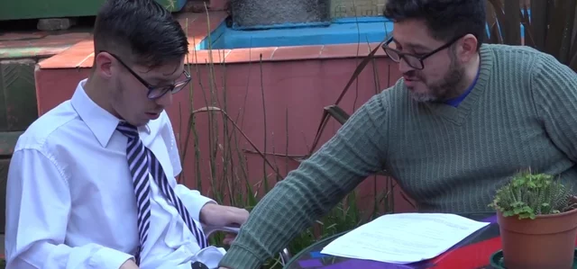 Older male rides a twink with glasses and slobbers on his stick before having his booty ravaged bare.