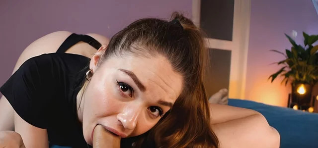 This brunet bombshell sunk to her knees, eagerly taking his titanic penis into her mouth. A tongue flicking across swollen lips, expertly wrapping around the throbbing head of her partner's rod. She eagerly takes his throbbing member into her mouth, expertly using her lips and tongue to drive him hard. The sensation of her wet tongue swirling around his shaft was plenty to drive him hard. Moans of satisfaction escape her as she skillfully engulfs him with each deep, horny suck.