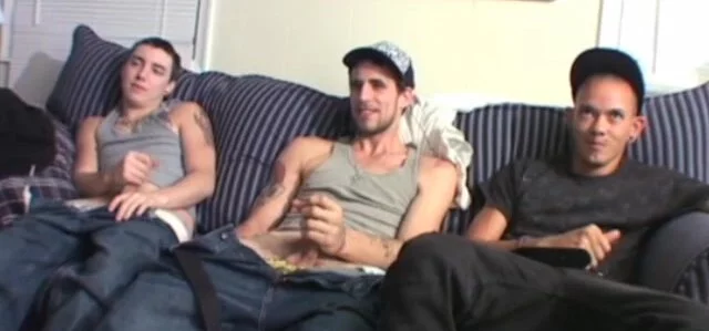 Homemade dudes jerking off their tremendous plump rods while attractive dude bangs his graceful wifes tight wet cunt!