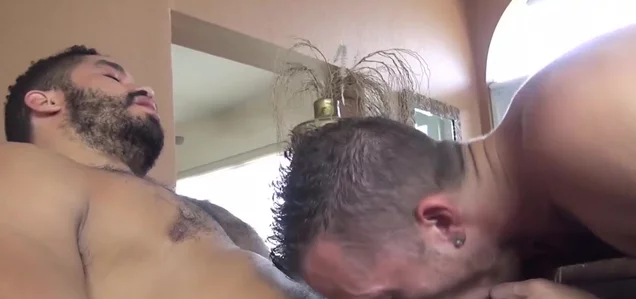 Passionate inked jock deepthroats massive rod of woolly stud slupring strong on his throbbing meat before getting a sexy cumshot facial.
