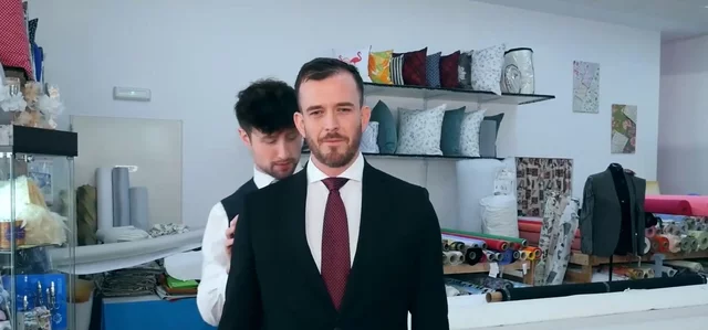 magnificent hunk Franky Fox pays a suit tailor in raw