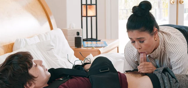 Dana considers it despite being flustered, saying she doesn't want to just leave him appreciate this when he's clearly desperate. After some hesitation, they agree Dana will jerk him off, but they must maintain it a secret