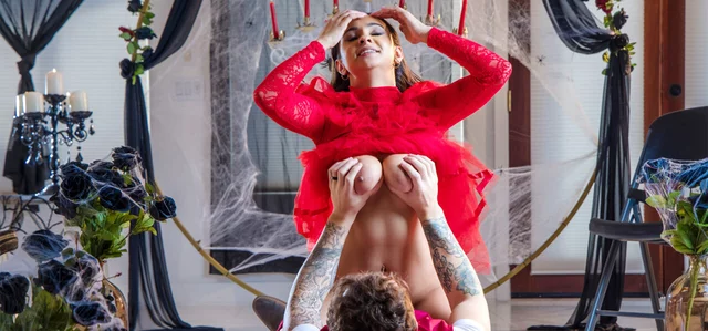 Halloween bang with lustful big tits stepsis in fetish costume Hailey Rose and tremendous dick dude enjoyed blow job by gigantic melons teen Jayden Marcos enjoyed fine blow by stepsister Sexy teen took screwed from the back and rode dudes gigantic rod on halloween night