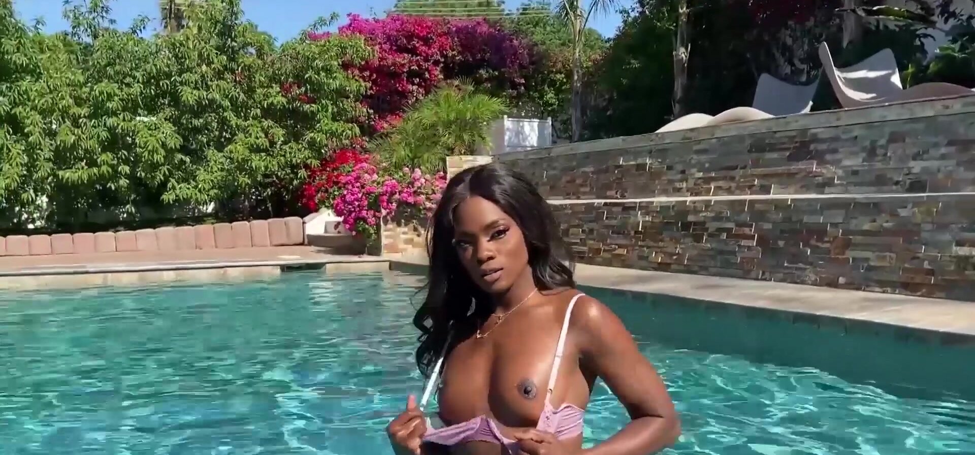 Small tiny juggs ebony MOM pornstar Ana Foxxx masturbated after posing in hot lingerie and sexy lady enjoyed sexy strip and alone action Tiny melons black MAMA removed lingerie and jumped into the swimming pool After posing MAMA enjoyed masturbation