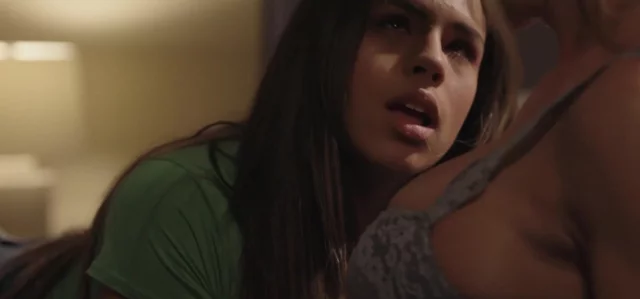 After a rough day cleaning tables and serving clients, Brandi Sex comes home and finds her babysitter, Autumn Falls, sleeping on the sofa.