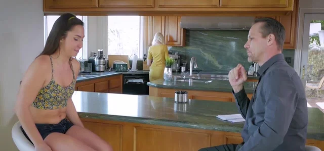 Geneva took exact down on her knees and started to suck while her milf was smooth cleaning up from breakfast!