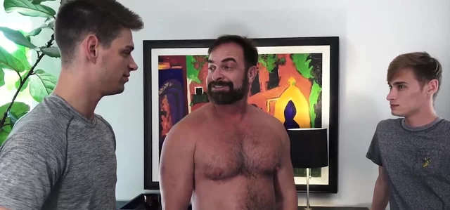 In a bareback papa 3way horny twinks rammed inten