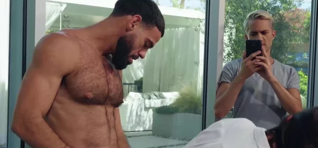 Silvia Saige an individual of notable physical attributes is engaged in an intimate encounter with two well endowed bisexual men.