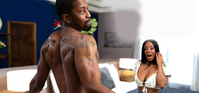 Sexy black housewife’s stepsister August Skye catches hubby Isiah Maxwell stroking his thick ebony cock while the wife’s away. It’s their little secret—until she lets him slip his massive dick inside and gives him the ride of his life!