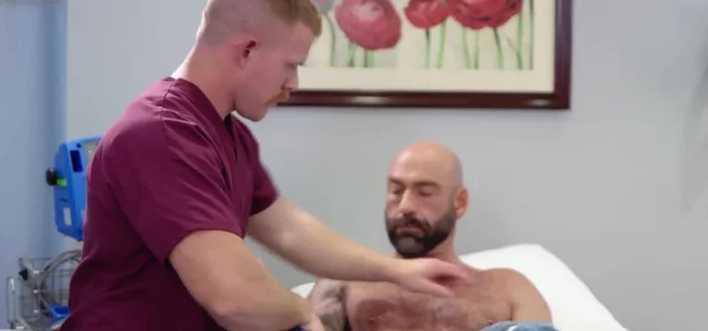 Doctor Jack Vidra came to see his colossal stud tattooed patient Drew Sebastian ends up ramming his great pierced dick before getting cumshot on his booty!