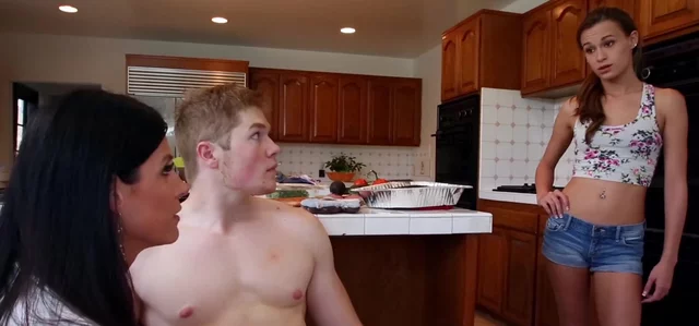 Tight teen and impressive MILF having their holes ripped up by a pale stud with a nice muscular body and an impressive vascular meat dick.