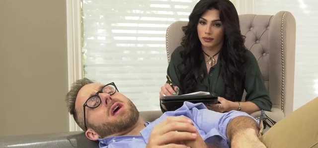 Mesmerizing tranny shrink Ariel Demure has her patient Joel Someone suck her off before she drills his tremendous throbbing rod for sexy jizz facial!