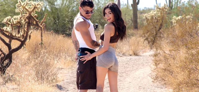 Flirty Sawyer seduces her stepbro in the van, sucking him before getting railed from behind on the road.