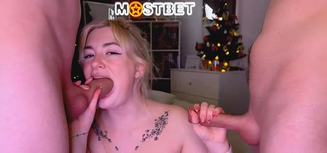 Watch as this massive melons blonde takes on not one, but two massive cocks in her greedy mouth. Her throat constricts around each shaft as she slurps and sucks with wild abandon. Will she be able to handle both throbbing members simultaneously? She takes them into her mouth, savoring every inch as she deepthroats their dicks with enthusiasm. She then change position where she rides on his big, wild stick. The rhythmic clapping of skin on skin, each thrust bringing her closer to sexual climax.
