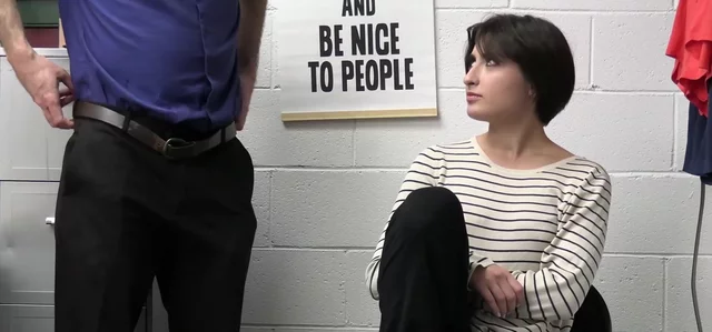 Mesmerizing shoplifter offers her tight cunt to get out of jail to kinky uniformed store owner who fills her with warm and sticky cum after rough pounding!