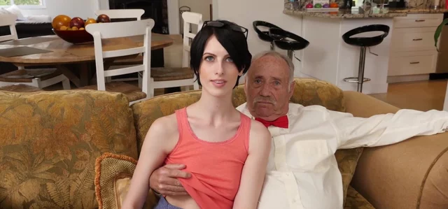 Tall short haired teen gets ass rammed roughly by experienced old dude. She's such a succubus, giving in to every geezer's desire!