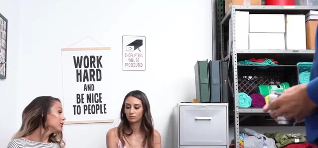 Busted teen thief Natalia Nix caught stealing with her blonde COUGAR mama McKenzie Lee and rough fucked in naughty threesome by a security officer.