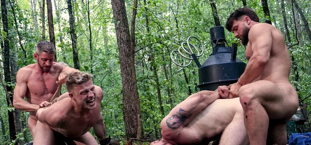 Hitchhiker Logan Aaron is tied to a tree where he must watch his traveling companion Brody Fox get ass-fucked by Heath Halo on the forest floor! If this brutal humiliation and banging isn't a lot for terrible Brody, wait for the end and you'll watch that Brody's nightmare has only begun.