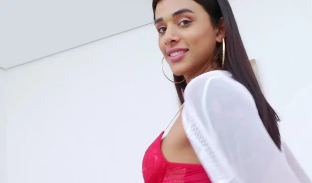 Stunning tattooed ladyboy Julia Alves actions her seductive lingerie before she gives herself a lustful anal play alone.
