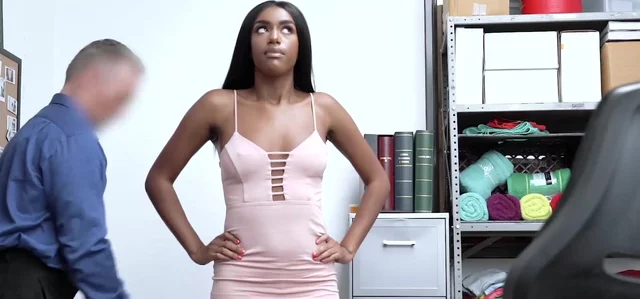 Adorable ebony shoplifter beauty Ashley Aleigh caught stealing and sucked security officer's massive rod before doggystyle fucked and nasty cum.