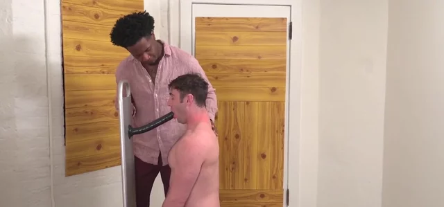 After a warm-up with a massive dildo, this white bottom takes a dominant black alpha’s thick, raw load.