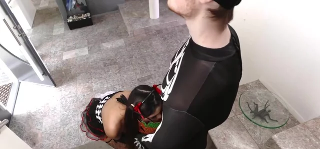 It's Halloween time! Small teen Katya Rodriguez is on a task to get some candies, but the passionate guy has took something else to give her!
