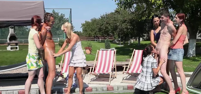 Adorable teens dominate two enormous rods at the swimming pool before slobbering on them and seducing deep