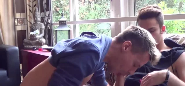 Hot twinks kiss passionately and noisily on a couch. Theyâre getting stuck in; hands everywhere, big dicks rock hard and bulging in their pants.