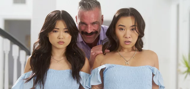 Two gorgeous Asian teens share one lucky guy—blowjobs, deep hardcore, and a stepdad twist that makes this threesome unforgettable.