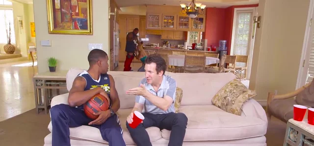 Horny big boobs blonde MILF fucked in interracial threesome at home, while the hubby is away on business trip.