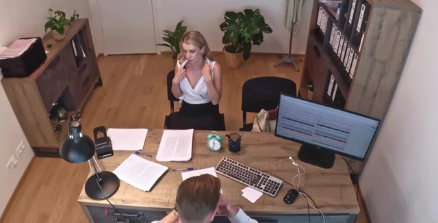 Andrea came for the money. She spread her beautiful legs, ready to be completely consumed. And her loan manager took full advantage of her.