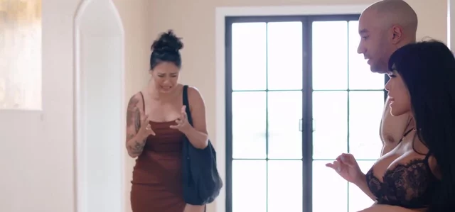 Caught in the act, MILF Dana chooses to join her husband and his busty Asian lover instead of walking away.
