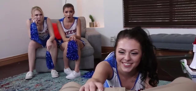 Three gorgeous cheerleaders sharing one large fat cock! Every college out there would be lucky to have these insatiable sluts!
