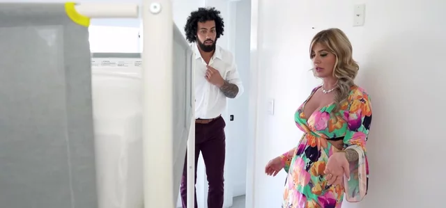 What starts as a TV repair turns sizzling when blonde Lolly Dames whips out her huge tits, luring James into bed.