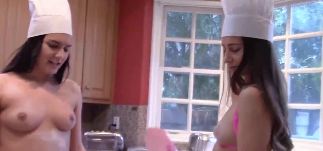 Two 18-year-old cuties abandon cooking to double up on a stiff cock, sucking, stroking, and fucking until the heat in the bedroom eclipses the stove.