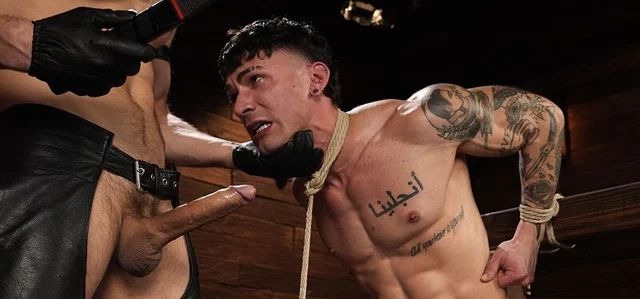 Submissive stud Siren Santiago is bound naked to a wooden chair, leaning forward as Eddie Patrick inspects his jacked boy toy. Watch as Siren begs for pleasure, enduring the electric zapper while satisfying his master in this intense encounter!