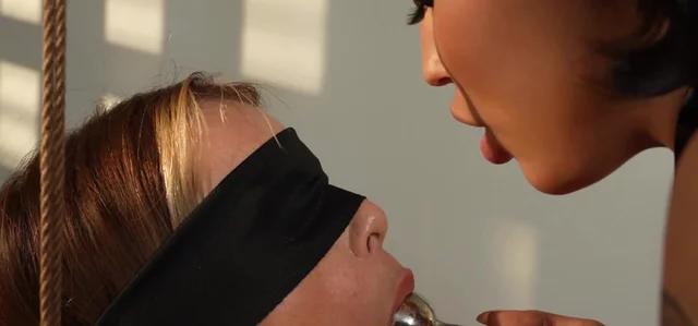The extremely stunning Summer Vixen kneels naked on a mattress with her ass out. Her tits are bound in rope and a metal hook is buried in her asshole!