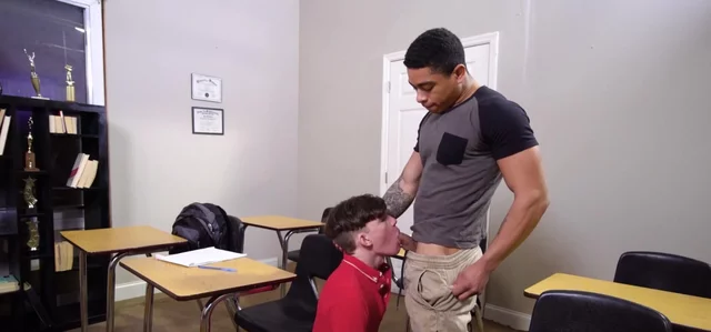 In class, Leon demands more than answers from Levi — forcing him to take his massive cock deep, risking getting caught by the teacher.