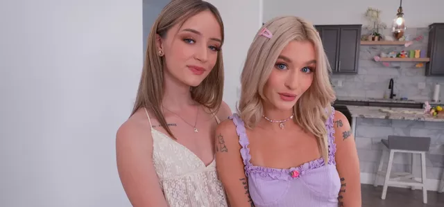 Small blonde stepsis Emma Rosie and her teen bestie Maria Kazi prank her stepbro on Easter to make him strip for them and end up admiring his large cock before blowing it together and making him pound their teen cunts with it in an easter threesome!