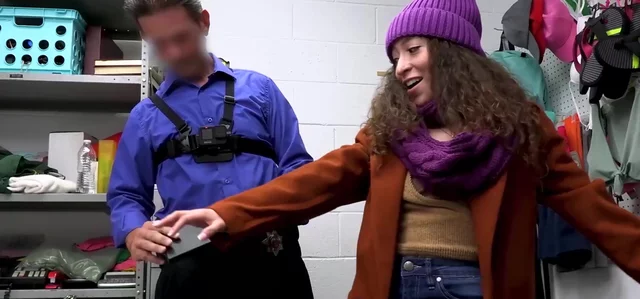 Cute Amber tries to swipe some makeup but gets caught by loss prevention before she escapes. See how her little heist leads to some backroom action you’ll wish you were part of. Watch now!