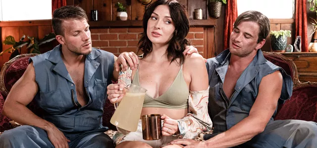 Ana Foxxx turns a quiet day with two handymen into a hardcore garden threesome — blowjobs, pussy eating, and rough railing until she’s moaning!