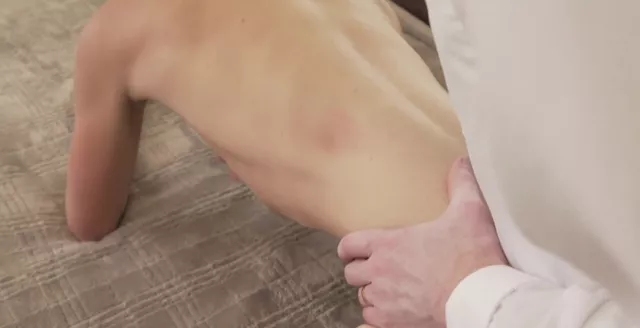 Cute twink gets his legs in the air for a elevated handsome daddy with his wedding ring still on for an intense raw fuck.