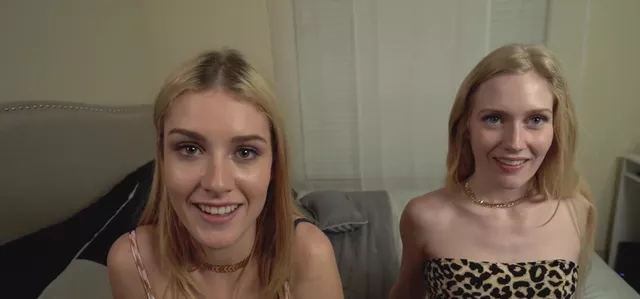 Emma and Mazzy tag-team their lucky stepdad, sucking him off before sharing a wild doggystyle POV fuck. Don’t skip this blonde three-way action!