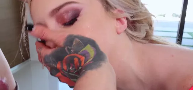 Cute blonde Lexi Lore gets her throat fucked and her ass drilled hard by Markus Dupree, finishing with a wild cumshot that leaves her face dripping.