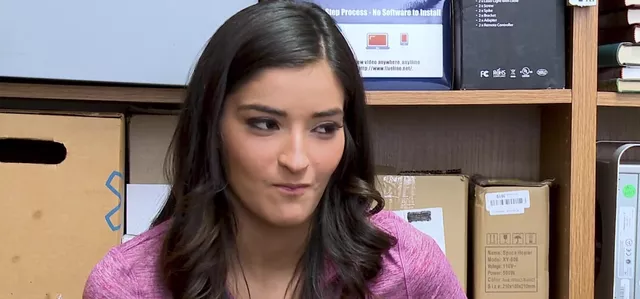 Emily’s bad behaviour gets her a hard office pounding and a pearly white coating she didn’t see coming. She’s all smiles after the sticky deal—watch her take it!