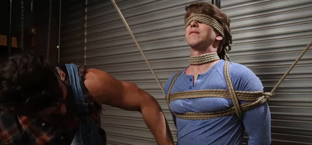 Sage Roux learns the challenging way that Heath Halo demands more than payment - tying him up, humiliating him and deepthroating him over the workbench.