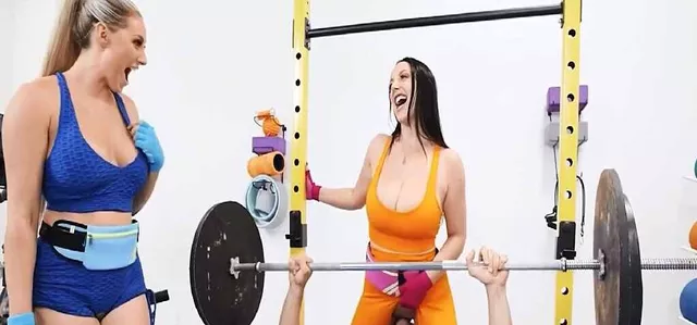 Angela White and Kayley Gunner rub their dripping pussies all over Van Wylde mid-workout, turning gym time into pure sex worship.
