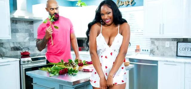 Busty ebony babe Brianna Moore uses her pierced tits to tempt her stepdad, sucking his thick BBC before bouncing hard on it.