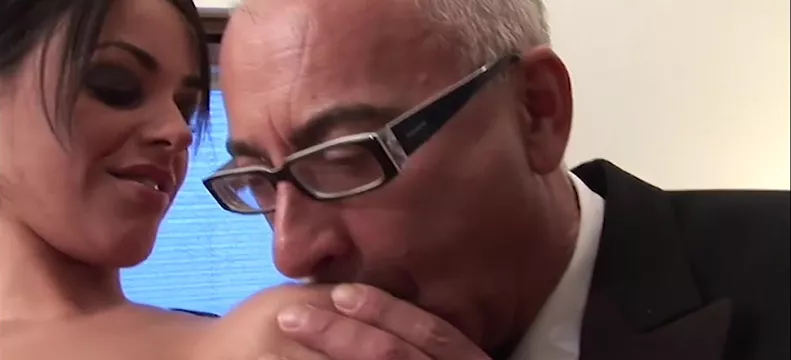 Shallow haired babe is fucked anally doggy style by an outdated man